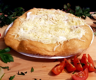 Lángos ist ein traditionelles ungarisches Gericht, das aus einem weichen Hefeteig zubereitet und frittiert wird.